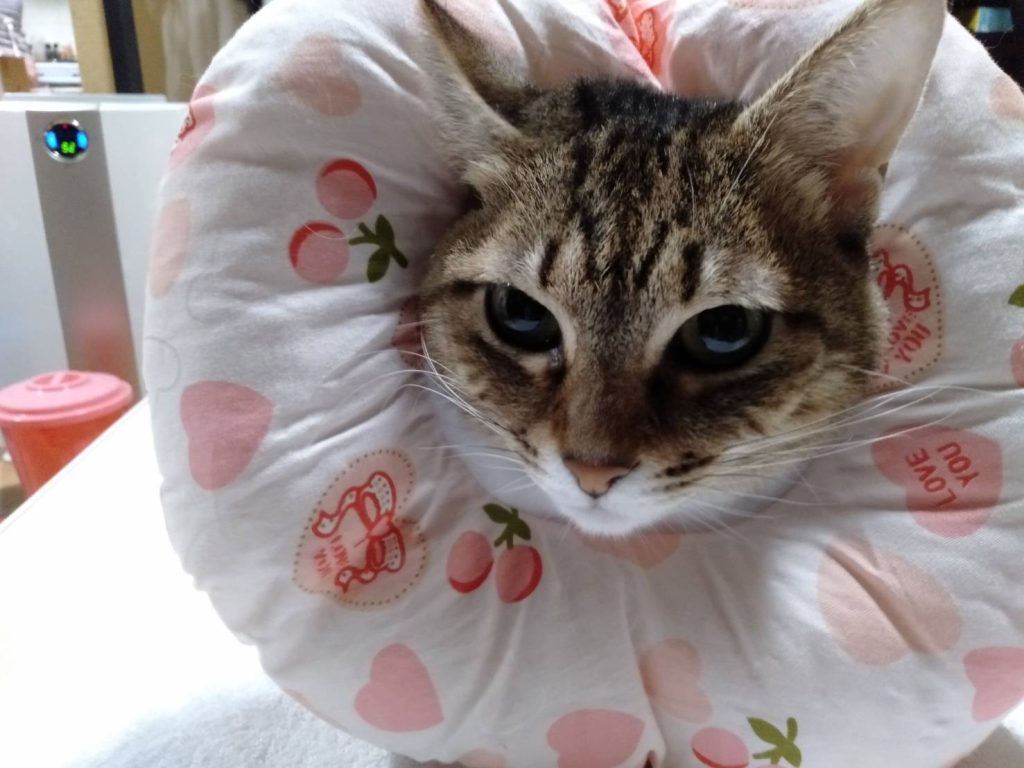 そんな場合はエリザベスカラーや猫用皮膚保護服を使うのも効果的です
