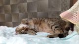 猫ちゃんは床でゴロゴロしています、床に落ちた消毒液も、もしかするとシュッシュとしているときに足元にいるかもしれません。そうすると毛繕いをするたびに口の中に入ってしまいますね